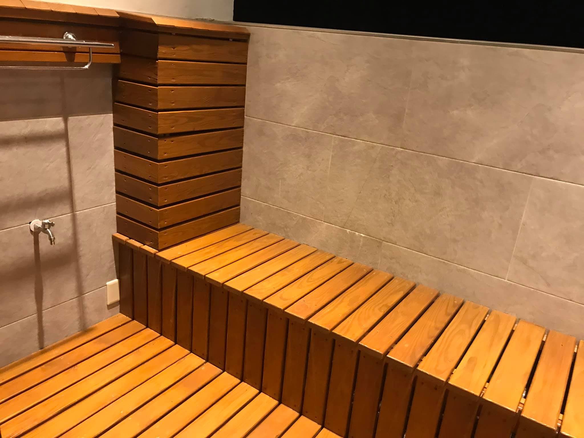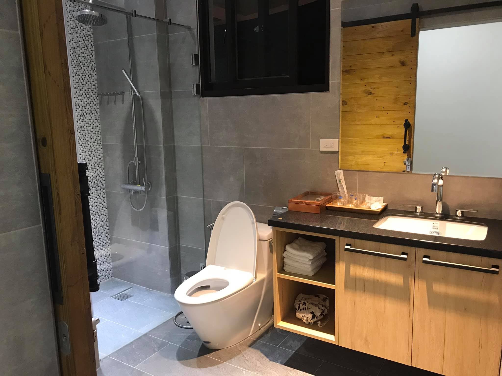 沐浴備品選用皂朵田工作坊手工皂,搭配訂製掛架與起泡袋,香氣純粹、對肌膚友善。