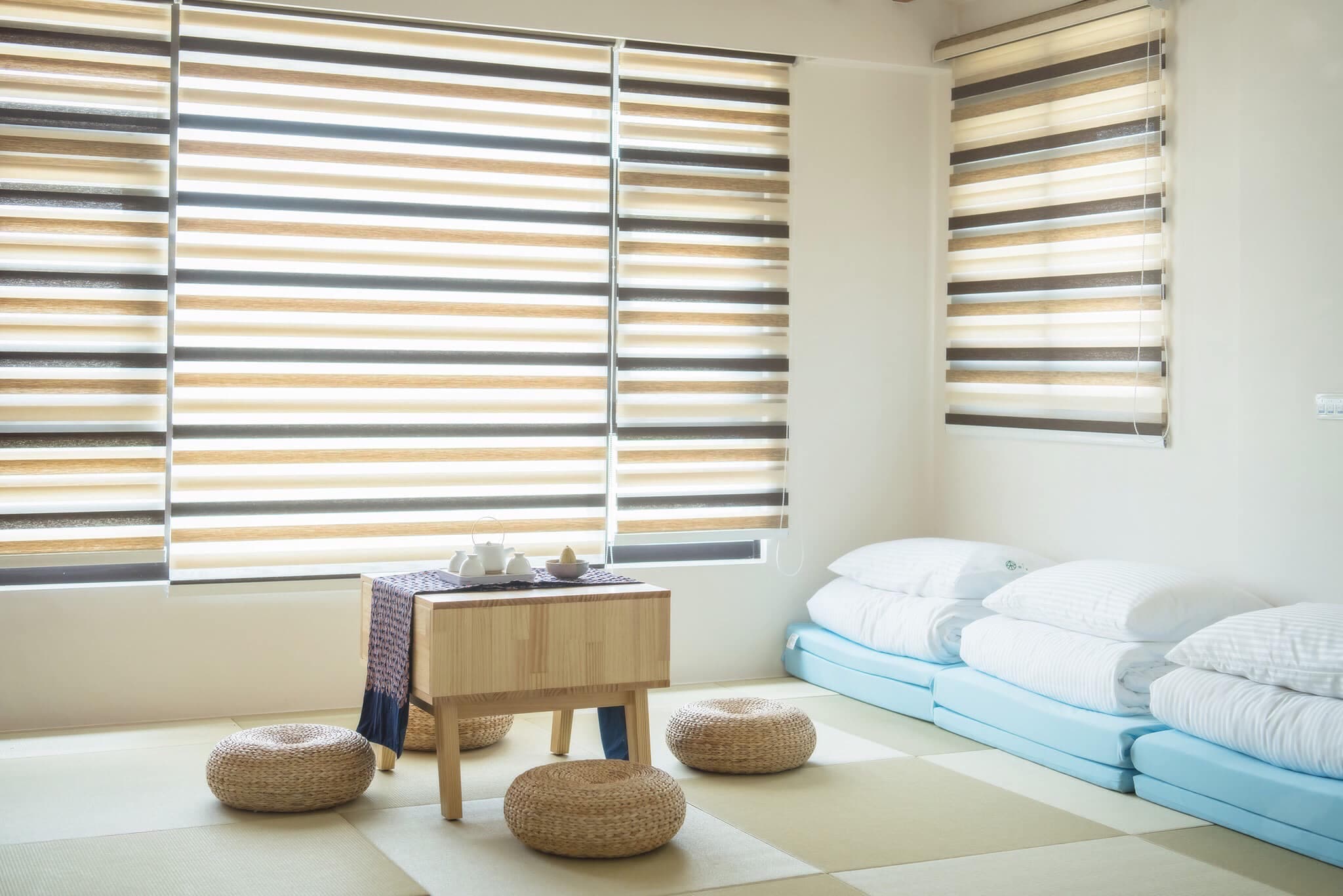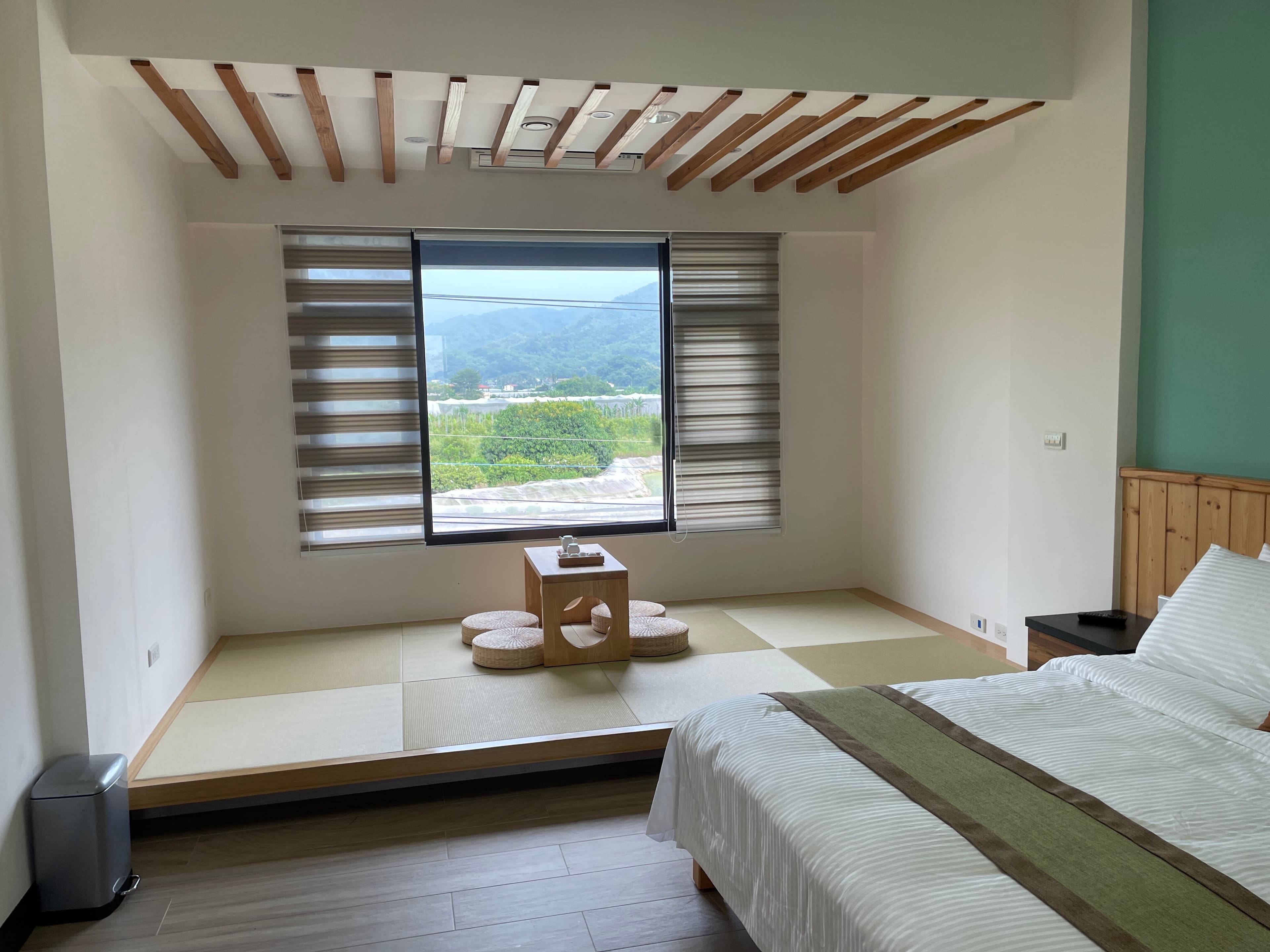 全房採用全球唯一抗菌調光簾,光線調節自如,保留窗外美濃聚落的景色。