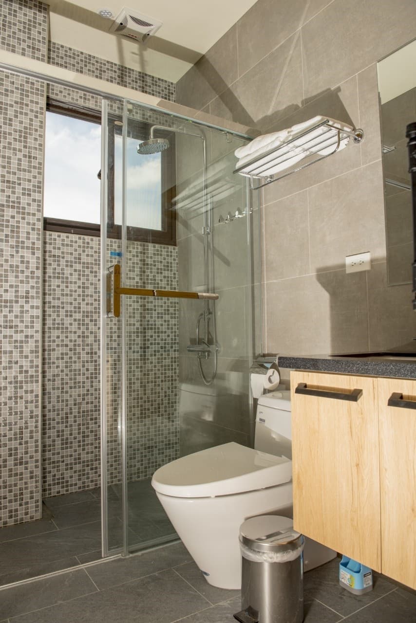 全棟使用鵝牌氣密窗,100% 防水防風,颱風天也能安心在房內看雨景。